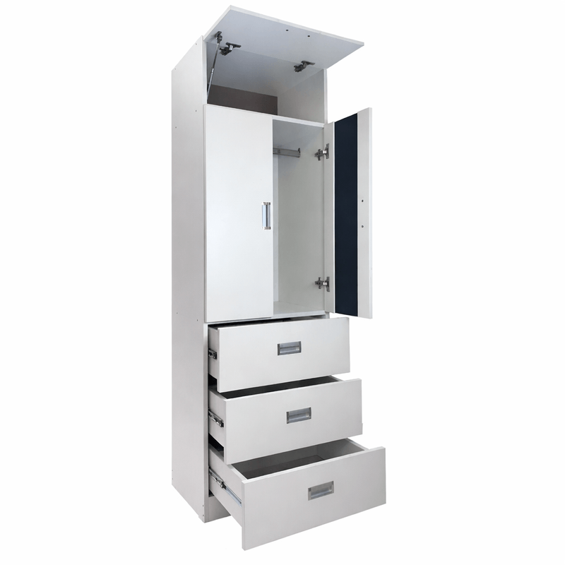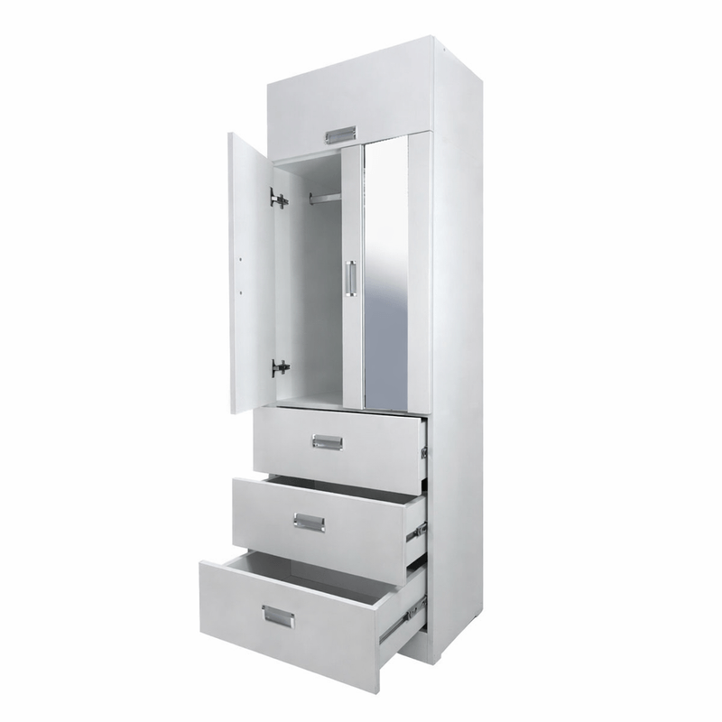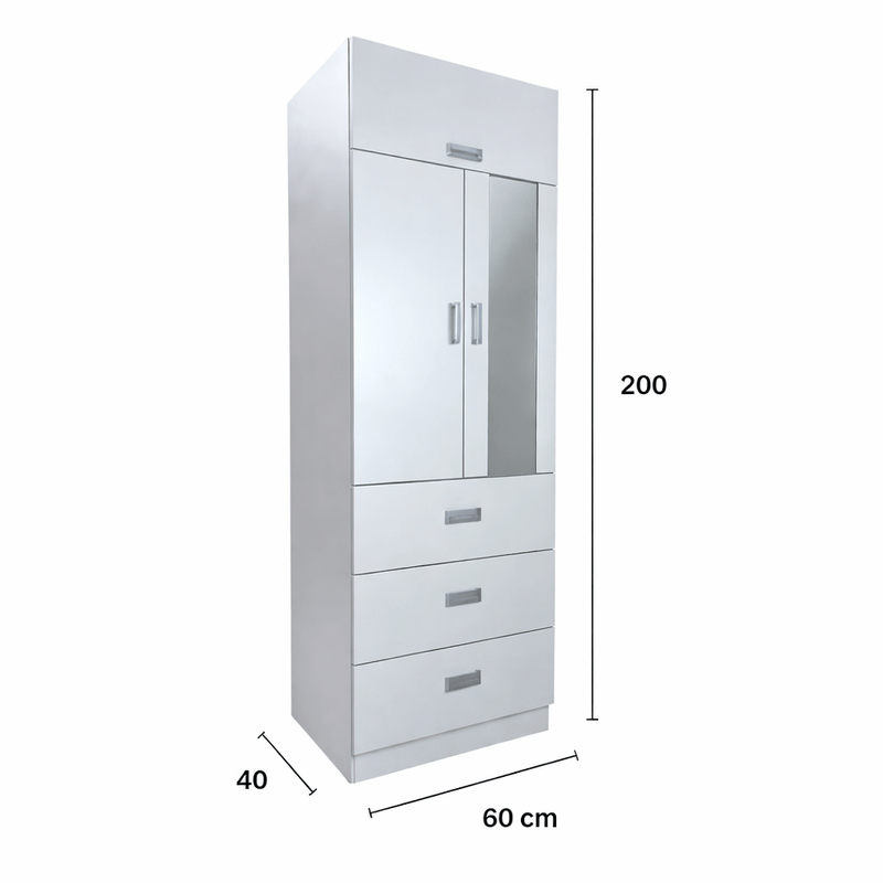 Este ropero de 2 puertas con espejo no solo guarda tu ropa, también mejora tu habitación. Con un diseño limpio y funcional, te ofrece espacio suficiente para colgar y organizar tus prendas, además de un espejo frontal para revisar tu look cada día. Con barra para colgar, sabanera, y 3 cajones con correderas telescópicas, este mueble te brinda el espacio que necesitas para guardar desde camisetas hasta abrigos. El producto se entrega armado.