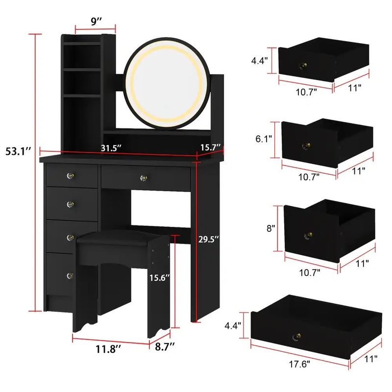 Dale un toque moderno y sofisticado a tu habitación con este tocador LED juvenil con espejo, diseñado para ofrecer iluminación perfecta, gran capacidad de almacenamiento y un estilo contemporáneo. Su espejo con luces LED ajustables proporciona la mejor visibilidad para maquillarte o arreglarte en cualquier momento del día. Elaborado de melamina de 18mm de grosor, cajones con correderas telescópicas y se entrega armado. No incluye banco de tocador.