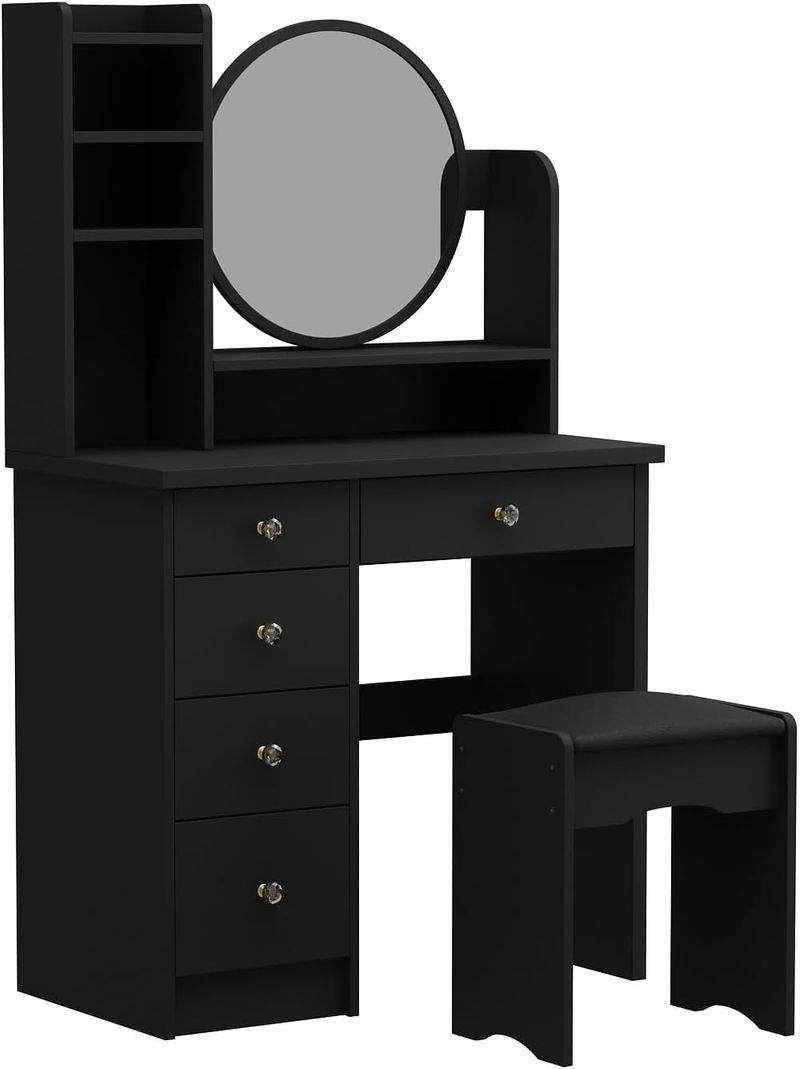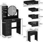 Su estructura moderna cuenta con amplios cajones y compartimentos, ideales para almacenar maquillaje, accesorios y productos de belleza. Fabricado con melamina de alta calidad, este tocador es duradero, fácil de limpiar y combina a la perfección con cualquier decoración. Amplios cajones y estantes – Espacio suficiente para organizar maquillaje, perfumes y accesorios. Elaborado de melamina de 18mm de grosor, cajones con correderas telescópicas y el se enrtrega armado. No incluye banco de tocador.